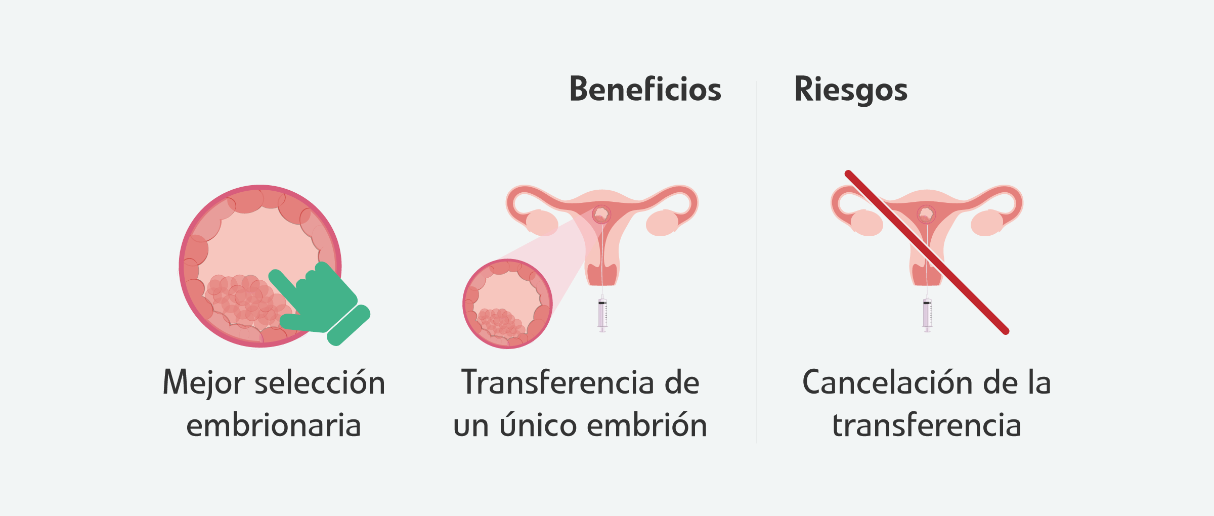 Este enfoque evita la necesidad de transferir dos o más embriones al mismo tiempo. De esta manera, se previenen los embarazos múltiples o de gemelos, los cuales conllevan riesgos importantes durante los meses de gestación tanto para la salud de la madre como para el desarrollo de los futuros bebés.